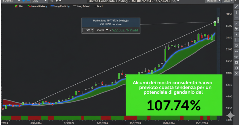 Allo stesso modo, è stata prevista anche questa inversione di tendenza su United (S&P 500:UAL), che ha generato oltre 107,74 % di profitto!